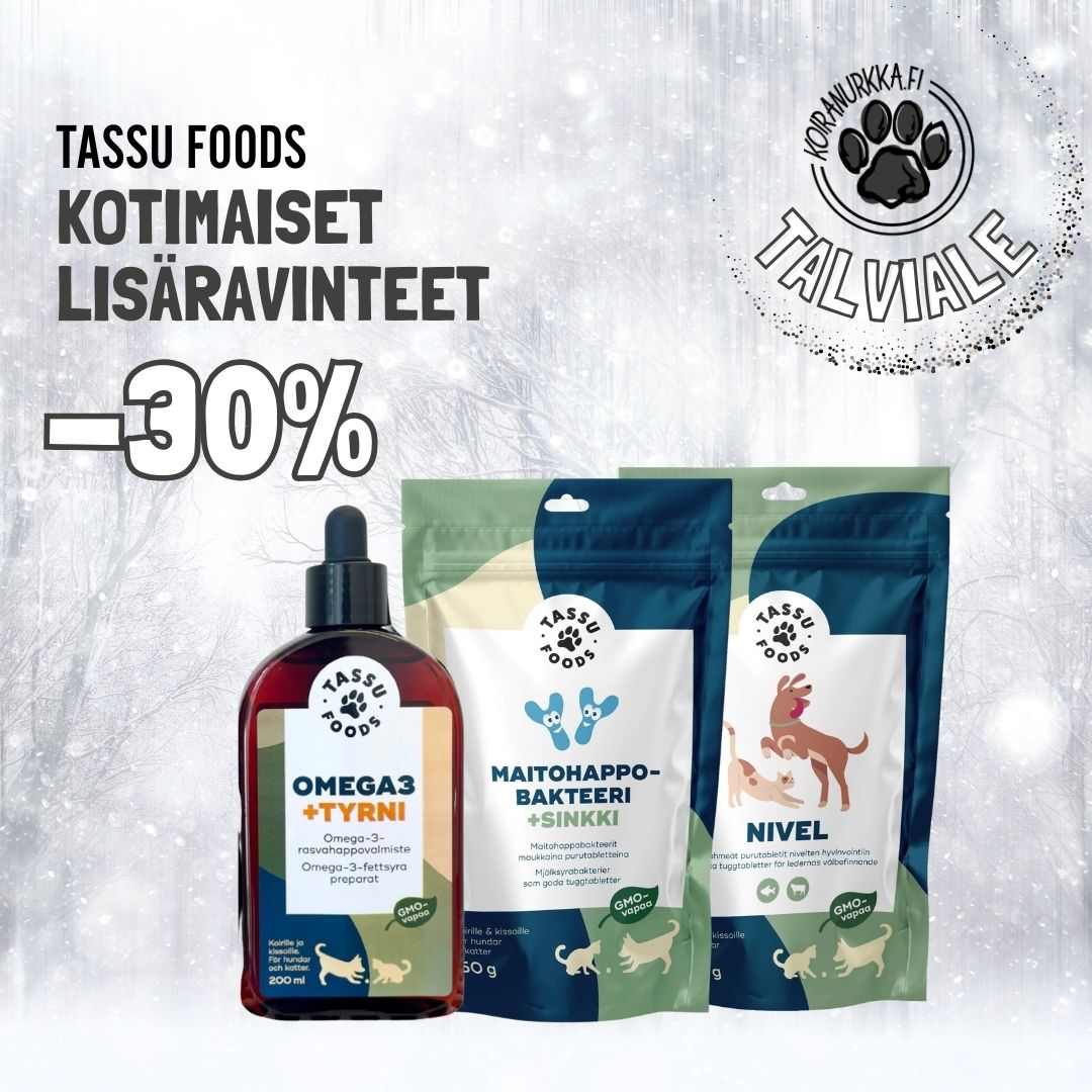 Edistä koirasi kokonaisvaltaista hyvinvointia kotimaisilla Tassu Foods lisäravinteilla. Rajoitettu erä.
