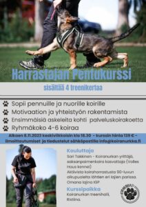 Harrastajan pentukurssi on tarkoitettu palveluskoiralajeihin tähtääville koirakoille. Kurssilla keskitytään erityisesti motivaation ja yhteistyön rakentamiseen jokainen [...]