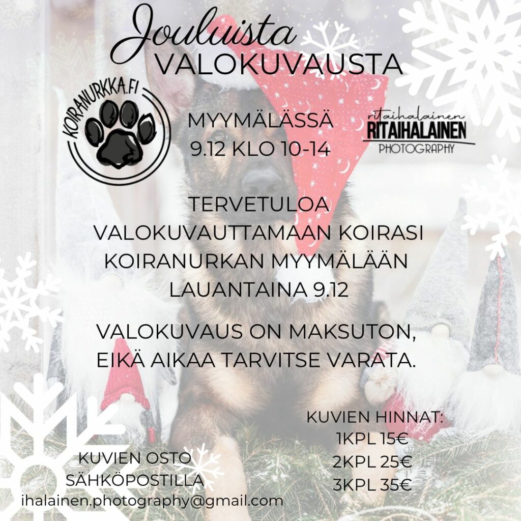 Tapahtumat & kurssitKOIRANURKAN JOULUINEN VALOKUVAUS LA 9.12 06 joulu KOIRANURKAN JOULUKUU Saksanpaimenkoiraliitto ry ja Koiranurkka yhteistyössä