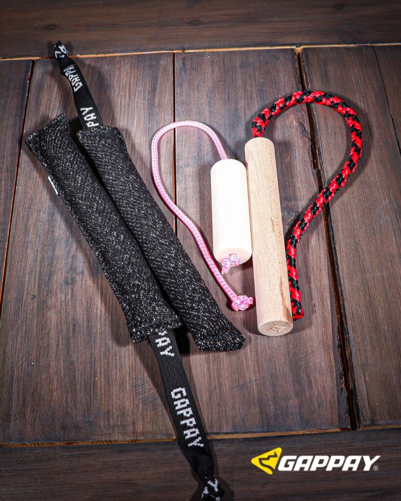 Yhtenä apuvälineenä voidaan käyttää magneettikapulaa. Se pysyy kevyesti kiinni nurmeen painettavassa maatelineessä ja irtoaa vasta, kun koira tarttuu siihen napakasti ja oikealla otteella. Tämä auttaa koiraa ymmärtämään, että pelkkä kosketus tai tassuilla säätäminen ei riitä – tarvitaan varma ja aktiivinen ote.