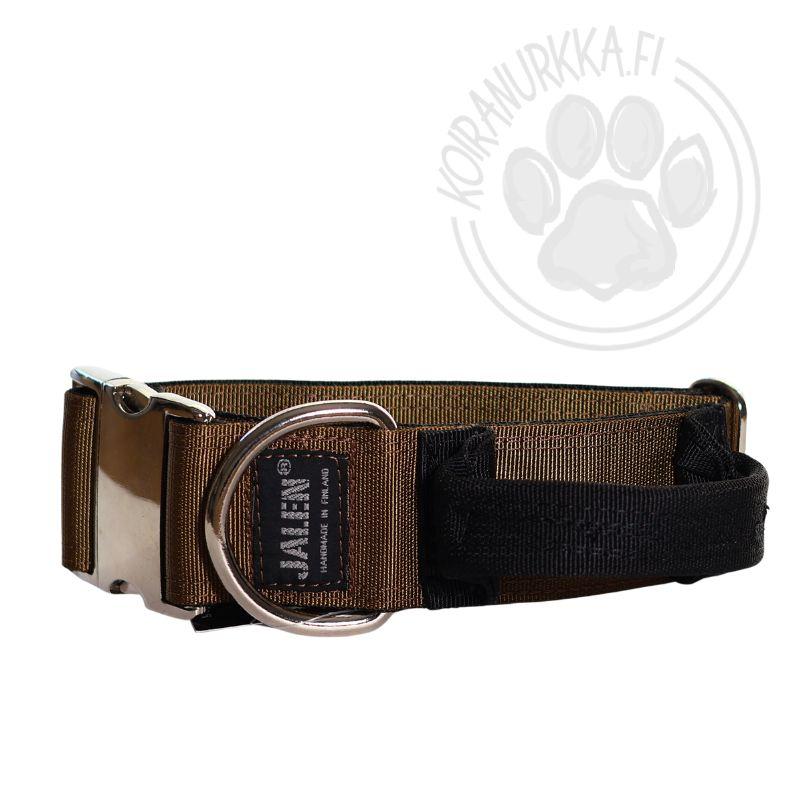 JALEN tukeva kahvallinen Alu-Max lukollinen kaulapanta antaa tarvittavaa pitoa omistajalle ja turvallista tukea koiran kaulalle. Pantaan on kiinnitetty moninkertaisella vahvalla ompeleella kestävä käsikahva, jota voidaan käyttää antamaan lisähallintaa niin harrastuksissa, kuin ulkoillessa.