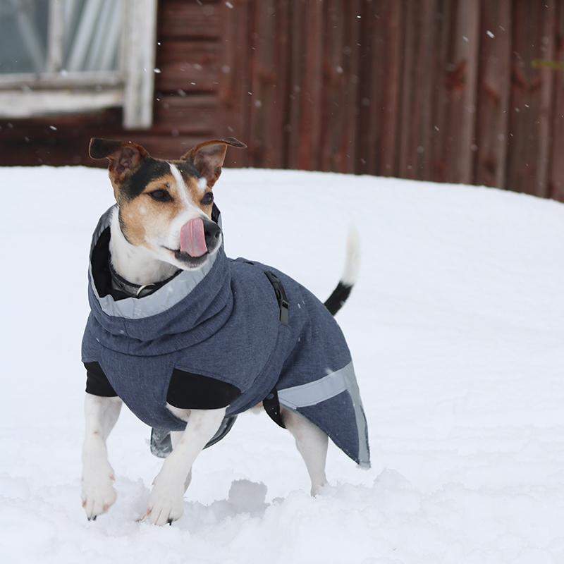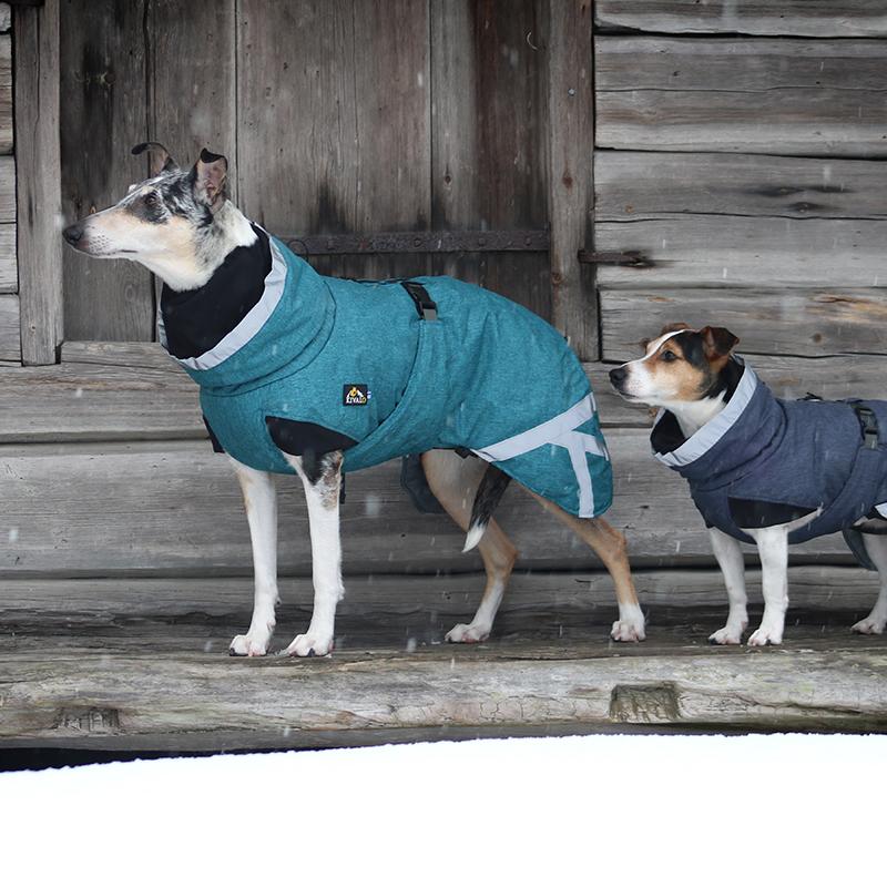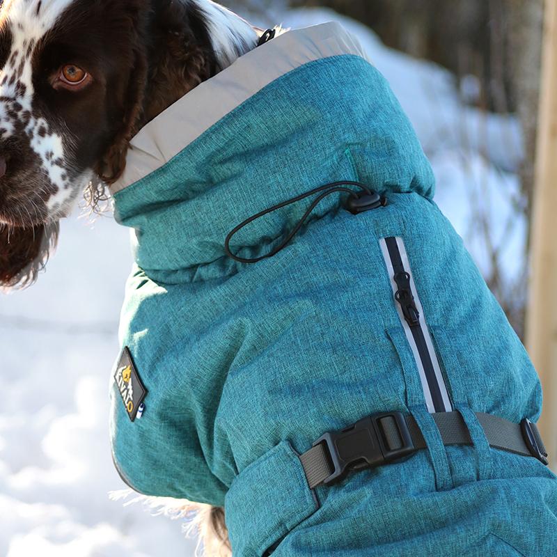– Lämpöä eristävä, vettä hylkivä ja tuulenpitävä talvitakki koiralle.