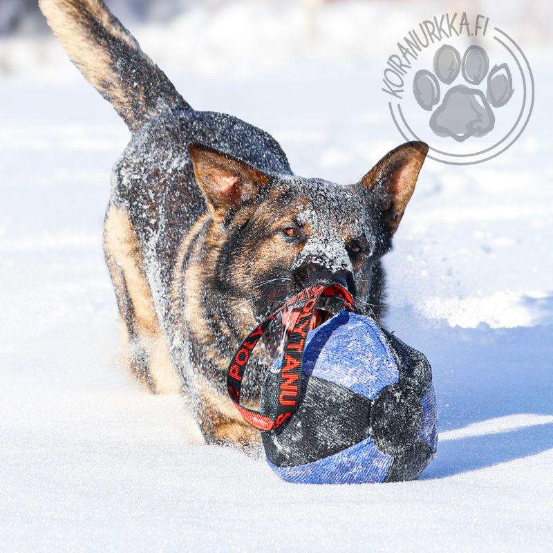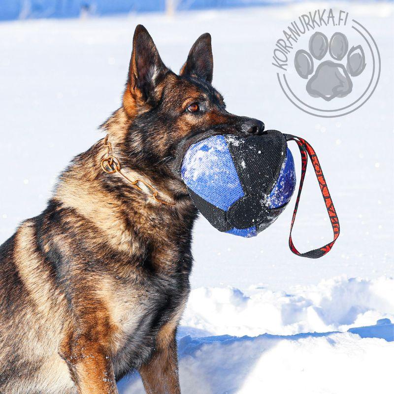 Kestävä nylcotpallo sopii hyvin, heitto-, veto- ja saalisleikkeihin myös treenien ulkopuolella.